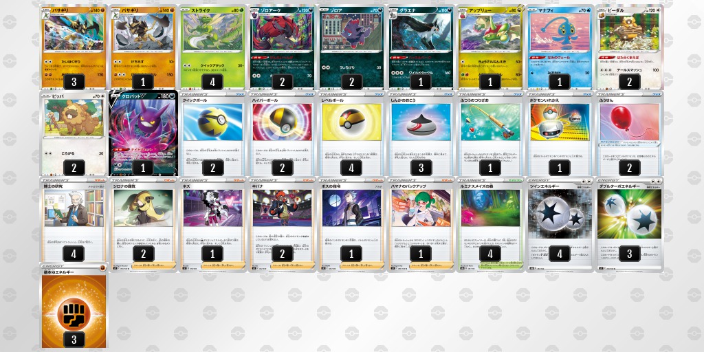 ポケモンカード店舗大会で優勝したバサギリ採用のデッキレシピをまとめました。