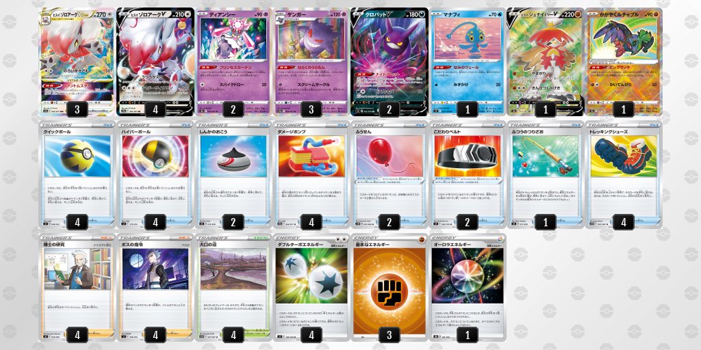 ポケモンカード店舗大会で優勝したヒスイゾロアークVSTAR基本型のデッキレシピをまとめました。
