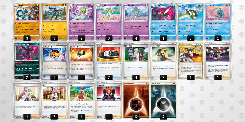 ポケモンカード店舗大会で優勝したルカリオ(たけるとうき)採用のデッキレシピをまとめました。